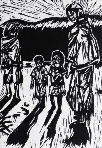 linoleum relief print; 7×5″