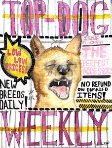 “When adopting a dog, how many people really think about where that dog came from? If they have been treated properly? Most don’t, because laws have been put in place to protect these animal’s rights, however unfortunately some people and places find a way around. My piece depicts a chihuahua dog in distress while on the cover of a magazine, being marketed as an accessory or an object. While seeing my artpiece I would like viewers to consider what they should be aware of when adopting, as well as its impact. I myself have a dog that was rescued from a puppy mill and bred for aesthetics. Because of this he’s had more health issues than any of our other dogs. I want to spread awareness on what animals could have gone through before they got a home, such as neglect, abuse, malnourishment, and unethical breeding.”