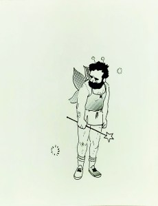 “My print is an expression of love towards fairies, the derogatory use of the word Fairy, and a love note to fairy wings I owned and broke as a kid.”