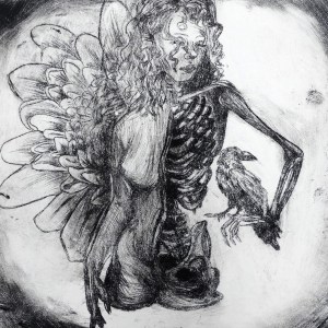 “Drawing and Printmaking students at Oak Hills High School worked under the guidance of art teacher Jamie Schorsch to create drypoint etching compositions based on a human right. My print is based on Article three of the UN Declaration of Human Rights which states, “Everyone has the right to life, liberty, and security of person.” To be human means to be alive; in my piece, the chrysanthemum represents life and the ability to grow. The woman symbolizes the connection between life and death as you can’t have one without the other. Article three also mentions the security of a person which is the right to health and privacy and the ability to be free. The crow signifies that people have a right to do as they please and have the ability to be free.”