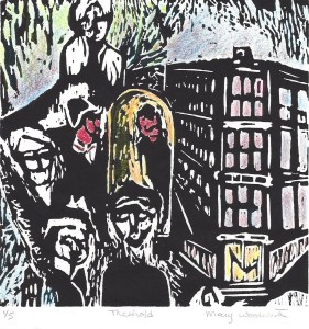 ARTIST BIO: Mary Woodworth has been hand-printing for 30 years. In her work, she exhibits a full range of techniques, from bold graphic black and white relief prints to lush abstract monotypes. Most recently she has been working in collage, using the collograph technique, to evoke a monumental landscape.