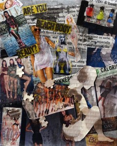 I used my own personal experience with body image, as well as the experience of others I know, to generate my topic. Through my piece, I wanted to portray a young girl who feels as if she is falling apart, which is one of many feelings that someone with body image issues experiences. For my collaged images, I used magazine clips, social media posts and images of models, in order to set up the expectation. The images are overlapping and muddy, instead of orderly, to show the thought process of the subject. The message I am trying to communicate is helplessness. I want to show how it feels to fall apart because of your body image, and how damaging it can be to a person.“
