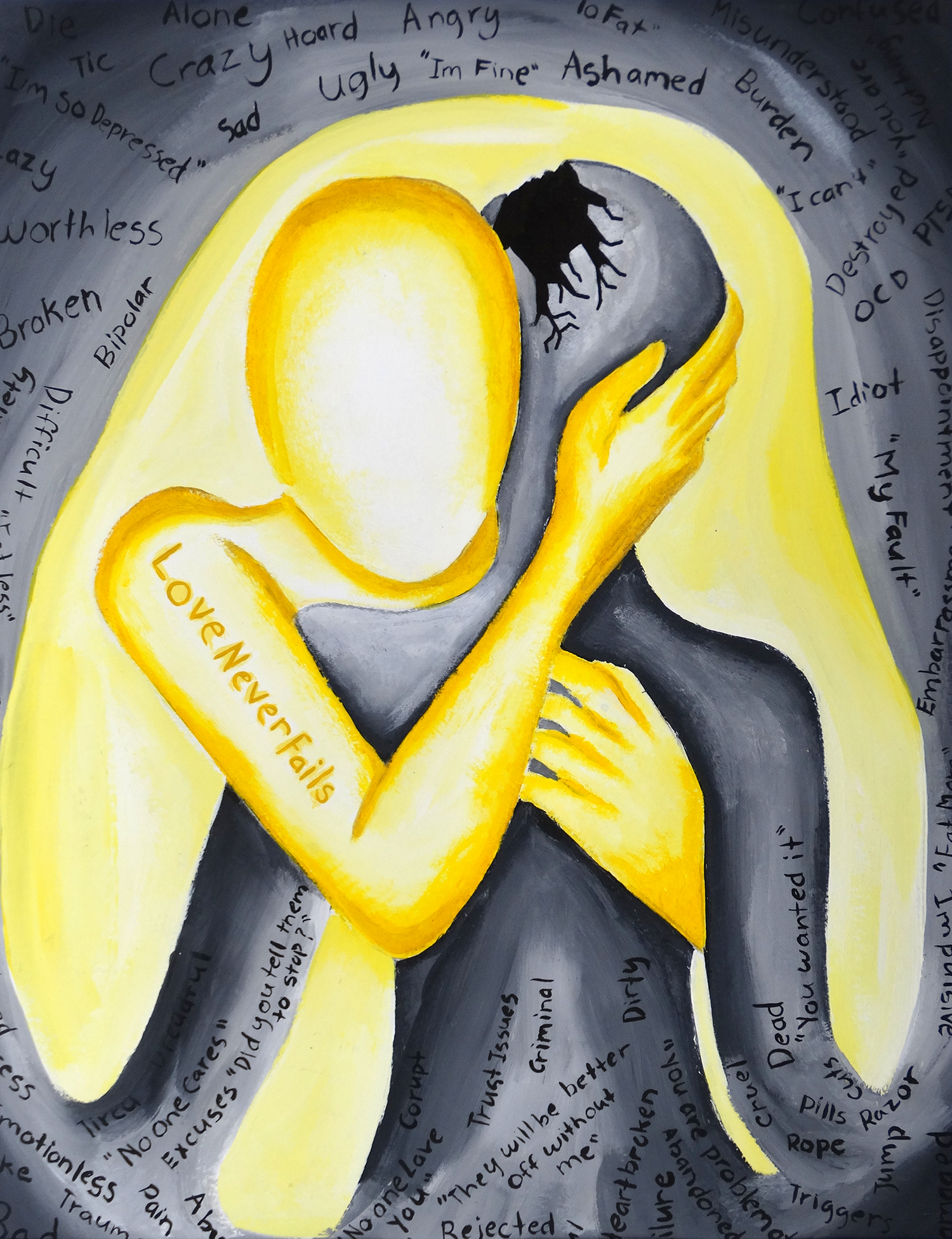 “My art piece is about Mental Health Illness. It relates to Article 2 of Human Rights: Freedom of Discrimination and underlines the importance of people accepting that they have mental health and that when they are in a dark space there is always a way out. This topic is relevant to me sinceI also suffer from mental health (depression and ADHD). My goal was to send a message to people telling them that there is hope for you.”