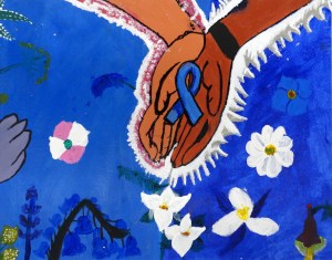 “My art piece is about child abuse and relates to Article 5 of Human Rights, Freedom from Torture and Degrading Treatment. I wanted to show that child abuse is in reality a big deal and that it can affect the mental, physical, and emotional state of the abused child. There are 700,000 reported cases of child abuse per year around the world, the most common form of maltreatment being neglect.”