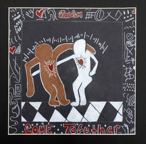 PROJECT: Having learned about the graffiti style artwork of Keith Haring and guided by art teacher Melissa Ambs, Steve Groh, Katie Jacobs, or Jamie Schorsch, students created a drawing in the style inspired by Keith Haring as a means of using symbolic imagery to communicate a message based on a global or social issue.