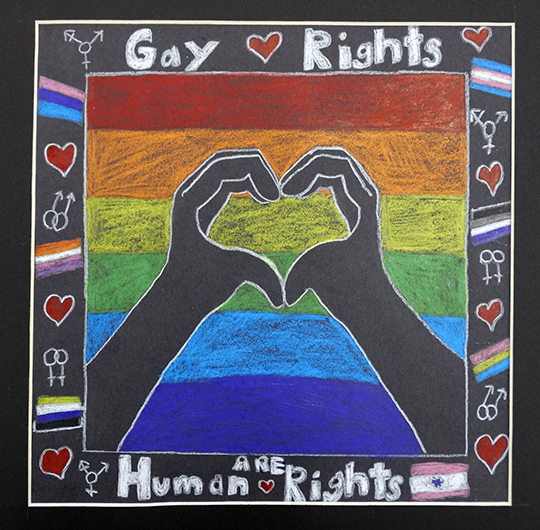 PROJECT: Having learned about the graffiti style artwork of Keith Haring and guided by art teacher Melissa Ambs, Steve Groh, Katie Jacobs, or Jamie Schorsch, students created a drawing in the style inspired by Keith Haring as a means of using symbolic imagery to communicate a message based on a global or social issue.