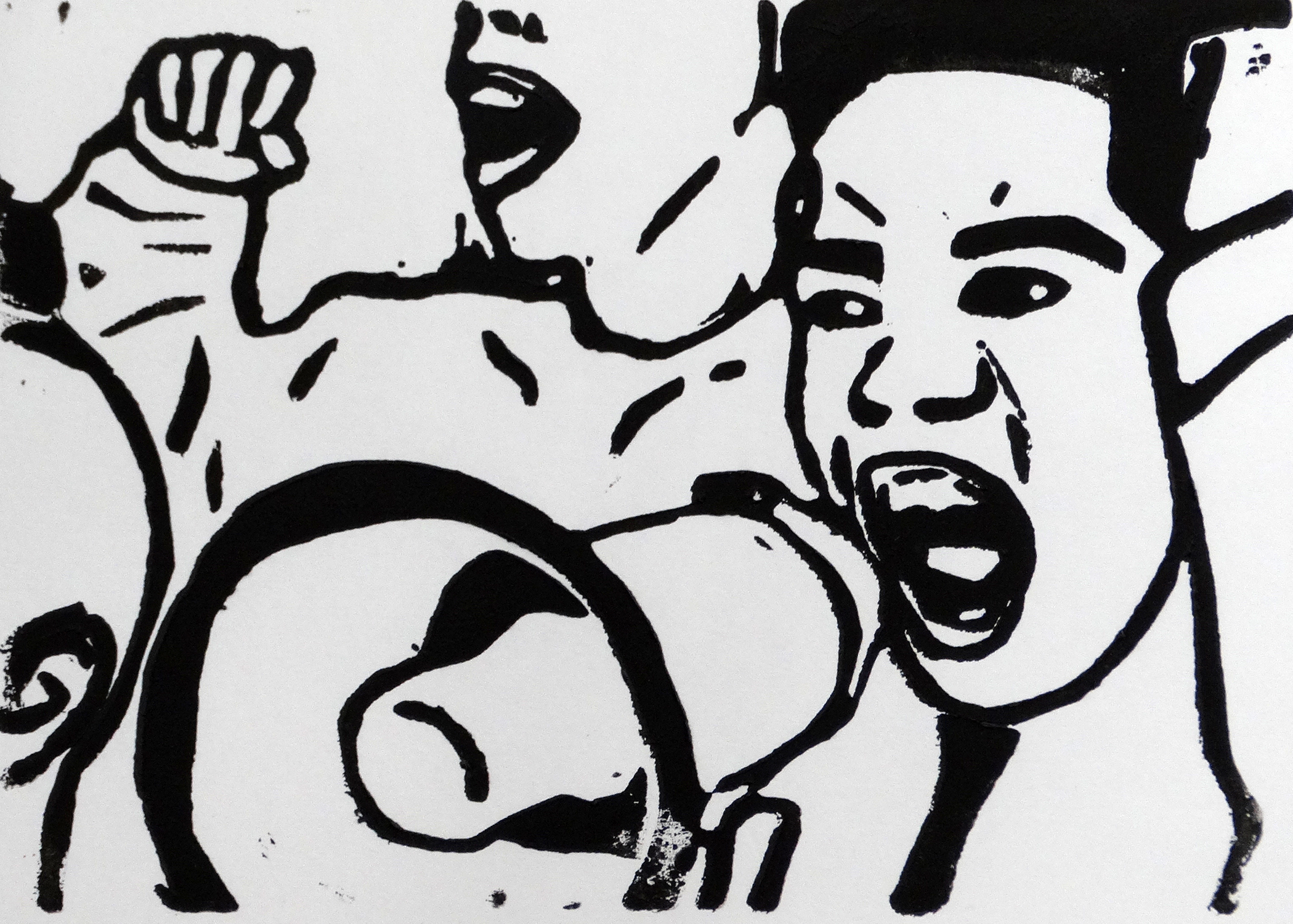 PROJECT: Guided by art teachers Melissa Ambs and Jamie Schorsch, students at Oak Hills High School researched some of history’s most (in)famous events of civil unrest and justice and visually communicated the essence of those events through the relief printmaking format. The goal of the work was to communicate the importance of documenting the power of people who challenge the violation of Civil Rights through a media that can be mass produced. Kathe Kollwitz served as the inspiration for this project for her role in educating the people about the horrors of WWI and WWII through mass produced prints.