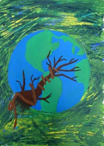 “Environmental conservation is required in order to save our planet. We only have this one, so we have to work together in order to save it. “Hold Strong”, means to express how important it is for us to protect the environment. I used the crack in the earth to show how it’s being destroyed, as well as the rope to show how it’s barely hanging on. Even just changing a few things in daily life would drastically change the events that would occur if nothing’s changed. Without change, our world cannot be saved.”
