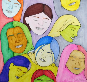 “Inequality of race is currently popular in the news. Skin color should not be what we are identified by. I wanted the faces shown in my artwork to just be equal, regardless of race or anything else. The colors used in my piece represent one’s inner colors.”