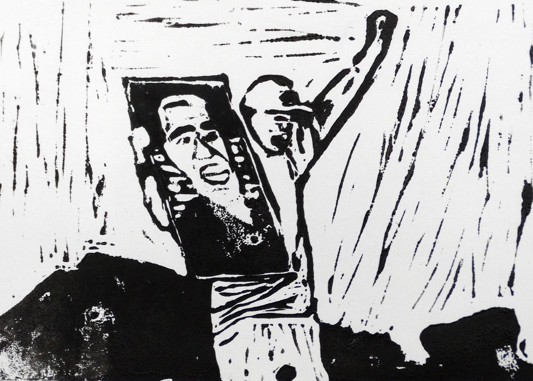 PROJECT: Guided by art teachers Melissa Ambs and Jamie Schorsch, students at Oak Hills High School researched some of history’s most (in)famous events of civil unrest and justice and visually communicated the essence of those events through the relief printmaking format. The goal of the work was to communicate the importance of documenting the power of people who challenge the violation of Civil Rights through a media that can be mass produced. Kathe Kollwitz served as the inspiration for this project for her role in educating the people about the horrors of WWI and WWII through mass produced prints.